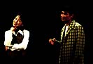 それで、電話がかかってきてなにか喋りはじめると、もう少し演技が入っているかもしれないですよね。ほんとはすごく疲れて話したくないのに、元気だよって喋ってるというそのことが、もう演技かもしれないんだけれど。そうやって喋っているうちに、なんかこれがほんとで、疲れてる自分がそうではないのかもしれないなんて思ったりしたこと、ありますよね。鴻上が意図してることは日常の中にも芝居があるし、芝居の中にも真実があるっていうようなことらしいんですけども。やっぱり世の中が全体的にどんどん演技することがうまくなってきてるんじゃないかと思うんですよ。仮面をつけるとか、そういったはっきりしたことじゃなくて、ちょっとづつずらして行くっていうか。で、ほんとに自分はなんなのかってことが、よくわからなくなってしまったりして。なんかそういうのを舞台にのせたいんじゃないかなって、私は理解しているんですけど」
