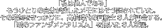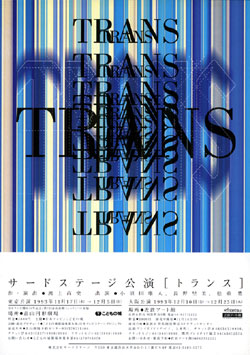 | 鴻上三人ぐらいだと役者さんたちがあちこちで集まってできる最小単位ではないかと思いますんで。実験的な場所でも大きな劇場でもいいから、いろいろやれたらいい・・・それで、僕が役者を変えてもやってみたいし、ほかの演出家の人にも好きなようにアレンジしてくれって渡してみようとも思ってるんです。もちろん僕が書くものだから、いわゆる起承転結伏線に涙と笑いっていう芝居にはならないと思いますけどね。あるわかりやすさもあるんだけど、わかりにくさもあって、とそういうものになればいいと思っています。 |