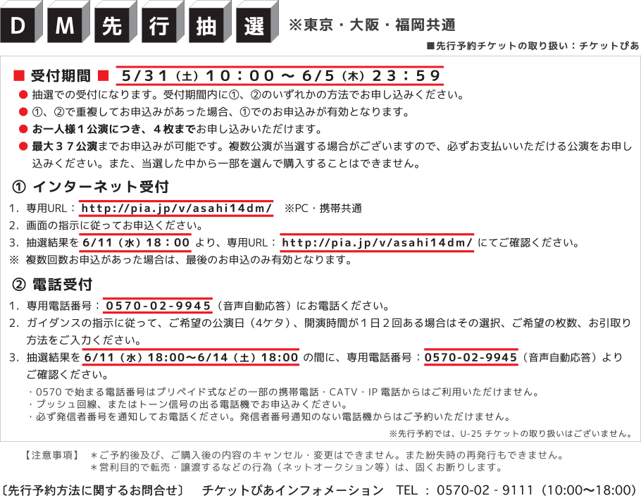 DM先行抽選 ※東京・大阪・福岡共通 受付期間5/31(土)10:00~6/5(木)13:59