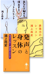 「あなたの魅力を演出するちょっとしたヒント(講談社文庫)」 「発声と身体のレッスン(白水社刊)」 「表現力のレッスン(講談社刊)」 質問ページ 「あなたの魅力を演出するちょっとしたヒント」、 「発声と身体のレッスン」、 「表現力のレッスン」 の本の内容に関する質問を受け付けるページです。 掲載できるものに関して鴻上が直接お答えします。 (質問に関するページ数やレッスンナンバーをお書き添えください。 ページ数やレッスンナンバーのない質問には、 お答えできません)