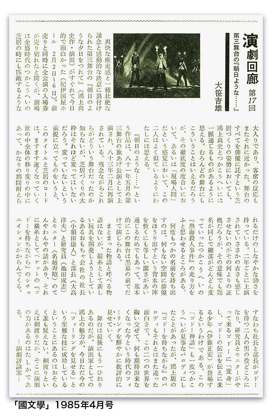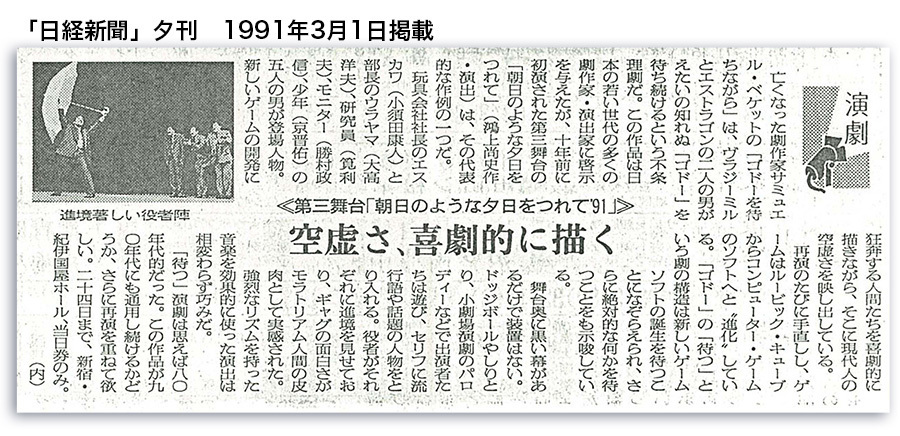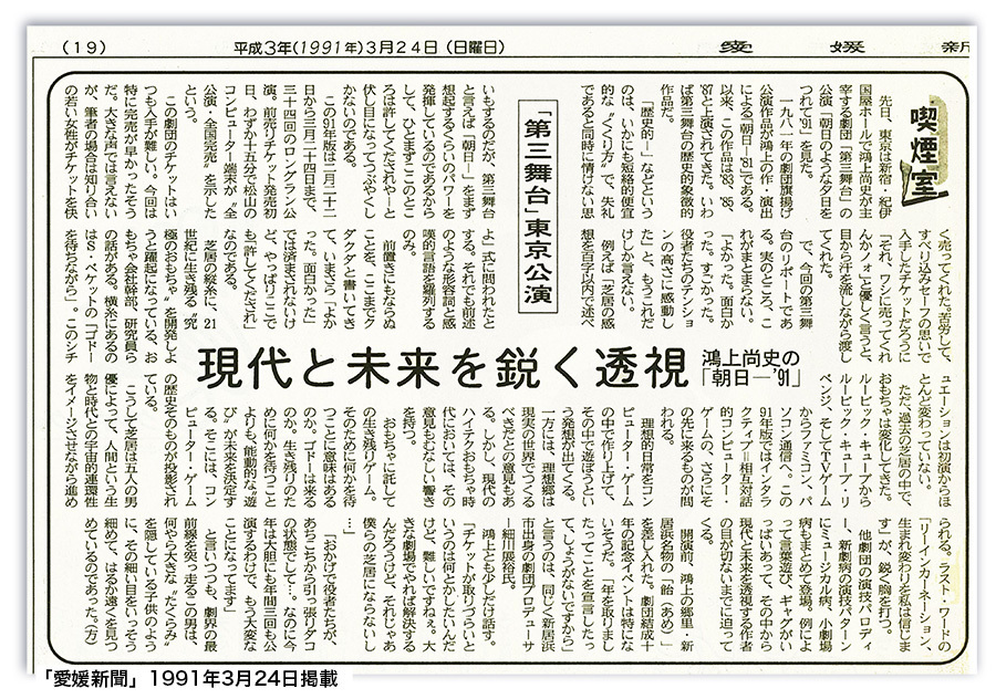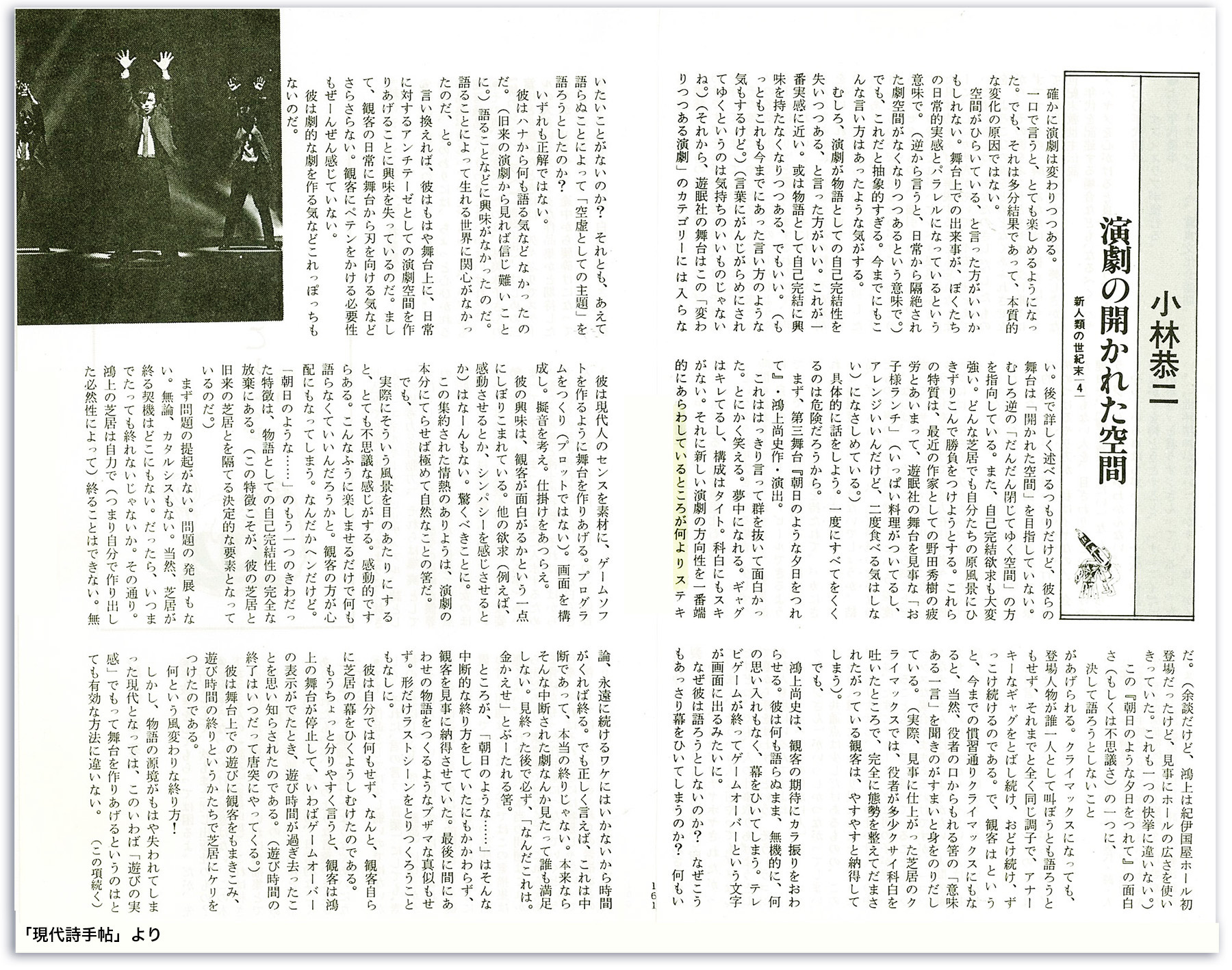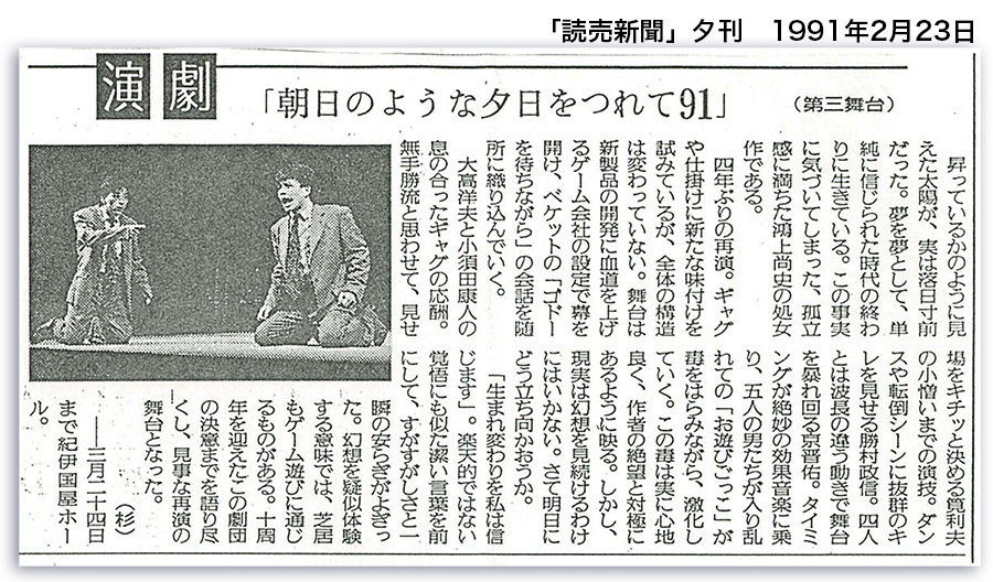 「美術手帖」1985年4月号 「現代詩手帖」より 1985年4月(「カポネよ、何故くしゃみをしない?」竹内銃一郎氏) 「國文學」1985年4月号 「産経新聞」朝刊1991年2月3日掲載 「スポーツニッポン」1991年2月4日掲載 「野生時代」1991年6月号 「東京人」1991年5月号 「読売新聞」夕刊1991年2月23日掲載 「日経新聞」1991年3月1日掲載 「愛媛新聞」1991年3月24日掲載