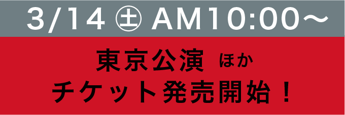 | 3.13 東京追加公演決定! ★4/30(木)18:00開演 スケジュール |